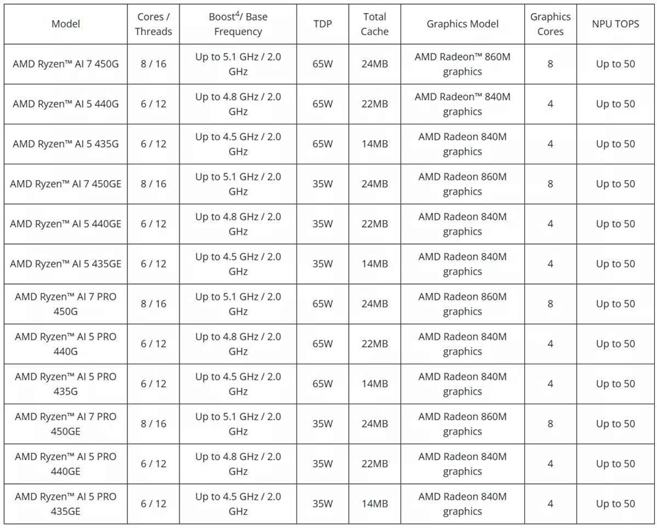 La gama está compuesta por tres procesadores: el Ryzen 7 450G, el Ryzen 5 440G y el Ryzen 5 435G: