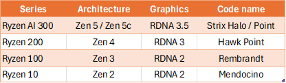 - Ryzen AI 300: procesadores basados en núcleos Zen 5 y Zen 5c (del año 2.024)