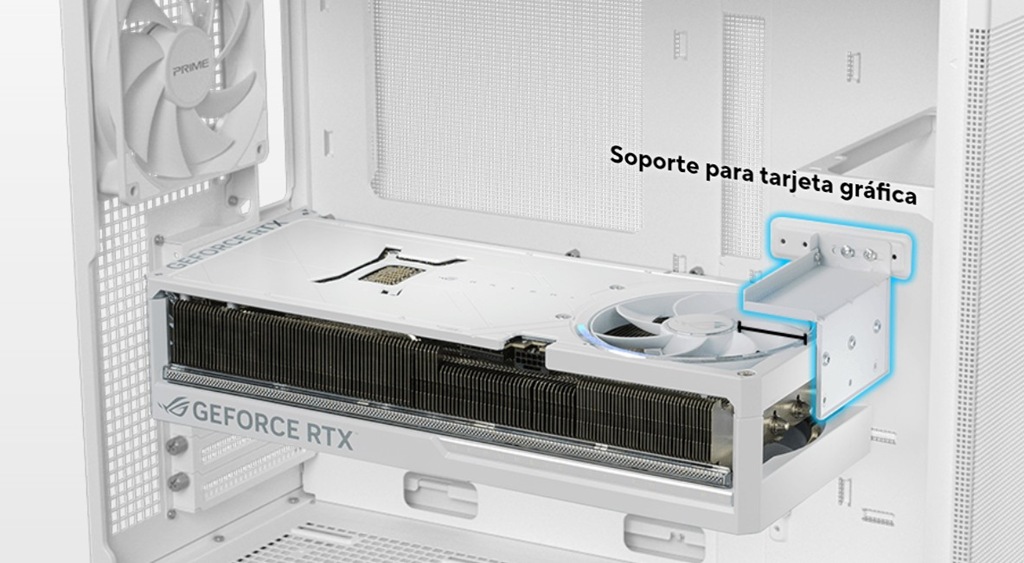 - Longitud máxima de la GPU: 360 mm, por cierto incluye un soporte para la tarjeta gráfica, algo que considero imprescindible para montar gráficas de gama alta.