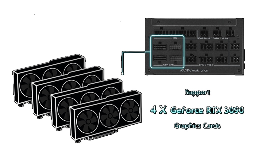 Con esta fuente podemos diseñar un PC (más bien una estación de trabajo o un pequeño servidor de IA) con 4 nVidias RTX 5090 funcionando a la vez
