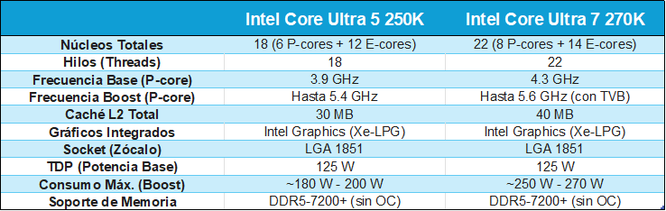 Los Core Ultra de Intel se acercan por fin a AMD: Core Ultra 5 250K Plus y Core Ultra 7 270K Plus