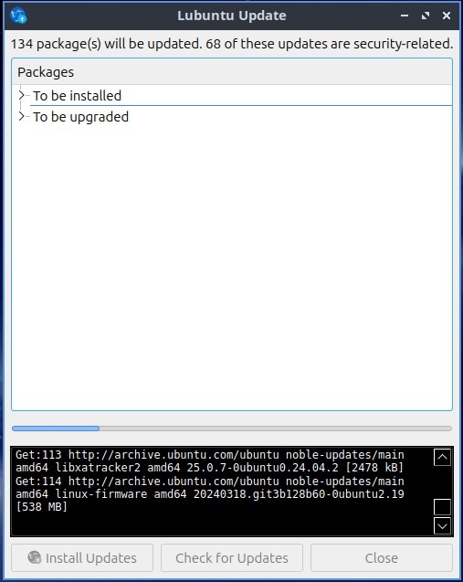 Pulsamos el botón de “Install updates” y esperamos que se descarguen e instalen. Nos pedirá la contraseña del usuario: