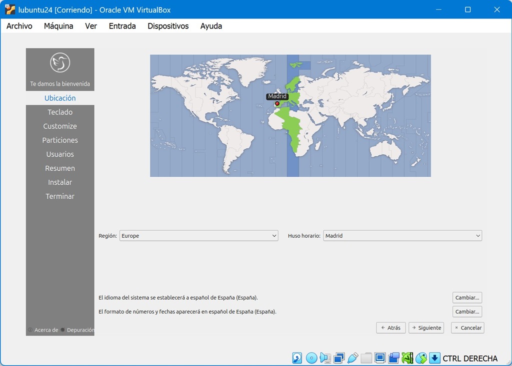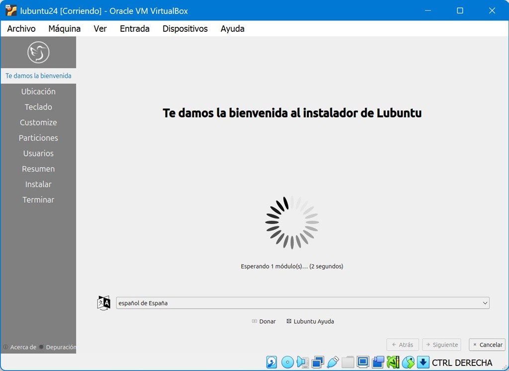 Al terminar (según la potencia del PC puede tardar unos minutos, no desesperar aquí…) aparecerá el menú en español: