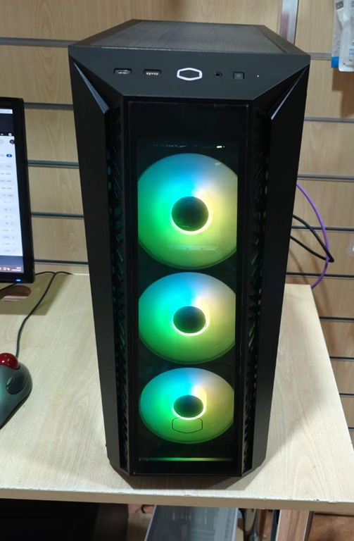 Lo único es que al final el cliente nos pidió ver cajas con leds y le gustó una CoolerMaster, concretamente la MasterBox 520. Hacía tiempo que no montábamos una CoolerMaster grande: