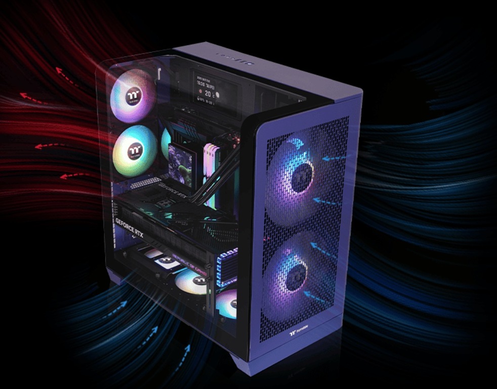 La caja Thermaltake View 390 Air Future Desk destaca por su lateral transparente en forma de L. Aquí me diréis que como la mayoría de caja ahora mismo… no exactamente. La parte corta de la L es la tapa superior de la caja en lugar del frontal.